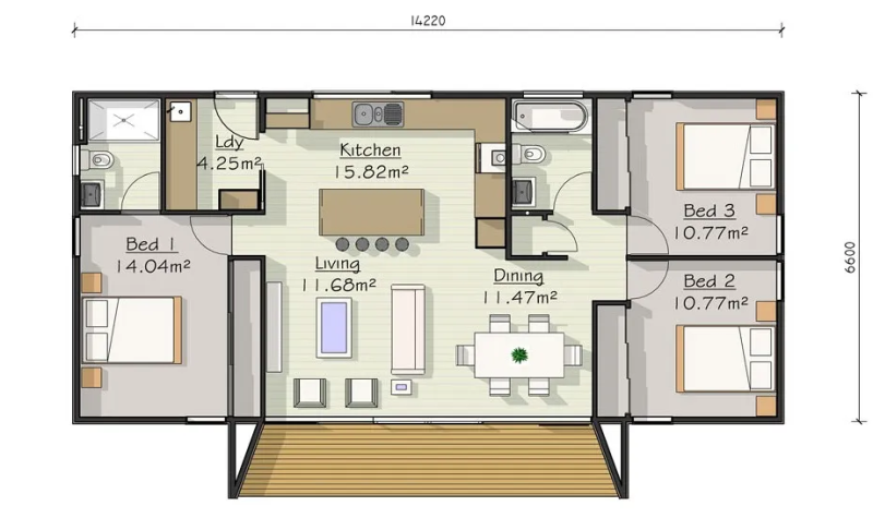 The living space separates the principal and secondary bedrooms and substantial wardrobe spaces in all bedrooms act as an extra audio barrier from the living area. The generous sized master bedroom boasts its own en-suite comprising a large double shower. The secondary bedrooms are double in size making them ideal for children or guests and are perfectly located close to the main bathroom complete with bath. To top this design off, there is also a separate scullery/laundry space leading from the kitchen with a back-door entrance.