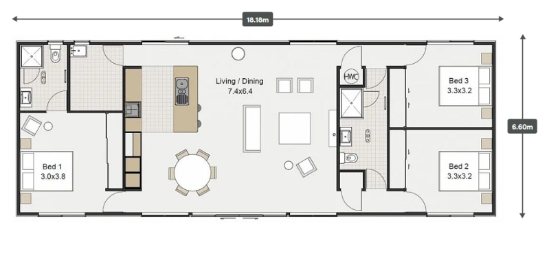The First Choice 120X Side Boxed Mono offers open living and dining area, perfect for entertaining guests and spending quality time with family. Well-appointed kitchen with modern appliances and ample storage space. Master bedroom with an ensuite bathroom for added convenience and privacy, not forgetting the 2 bedrooms and bathrooms on the opposite end of the house. Ideal for children, guests, or a home office.