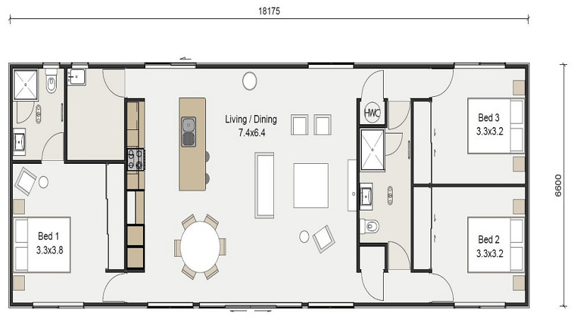 The First Choice 120X Side Boxed Mono has been specifically designed for today’s modern living, with the open plan kitchen / living areas as the social hub of the home. The master bedroom, with its own ensuite, is located away from the other 2 bedrooms making this design ideal for growing families or a perfect setting for your guests staying.