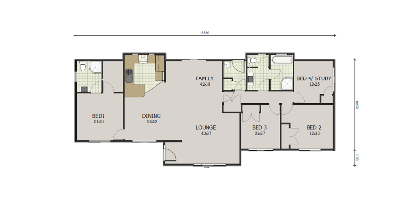 The ‘Kingsley’ Plan is an ideal layout for families giving parents some separation from the kids bedrooms with bedrooms 1,2 & 3 all facing north and the rural views.