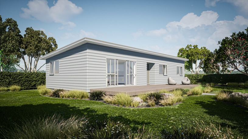 This package also includes allowances for Building Consent, Geotech & Stormwater reports, 15m2 of timber decking, rear landing, steps & handrails, baseboards and delivery onto standard timber piles. Additional allowances have also been made for water, sewerage and electric connections. We’ve also included a heat pump and chosen upgrades for the cladding and roofing.