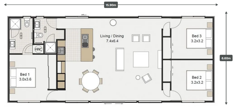 This three bedroom, two bathroom stylish plan has been designed with central living as the focus of the home. Large sliding doors open up your living space to access the outdoor area with ease. Add a large deck and covered pergola and make this space the perfect entertainment zone. Your master bedroom is privately at one end of the home with ensuite. Bedrooms two and three at the other end, ideal for a growing family or those who enjoy having guests to stay.