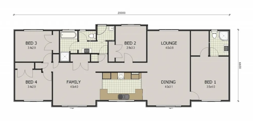 This spacious four-bedroom, two-bathroom home is one of our top designs. The Mansfield provides plenty of open plan living including a central kitchen which flows into the family living and lounge/dining areas.