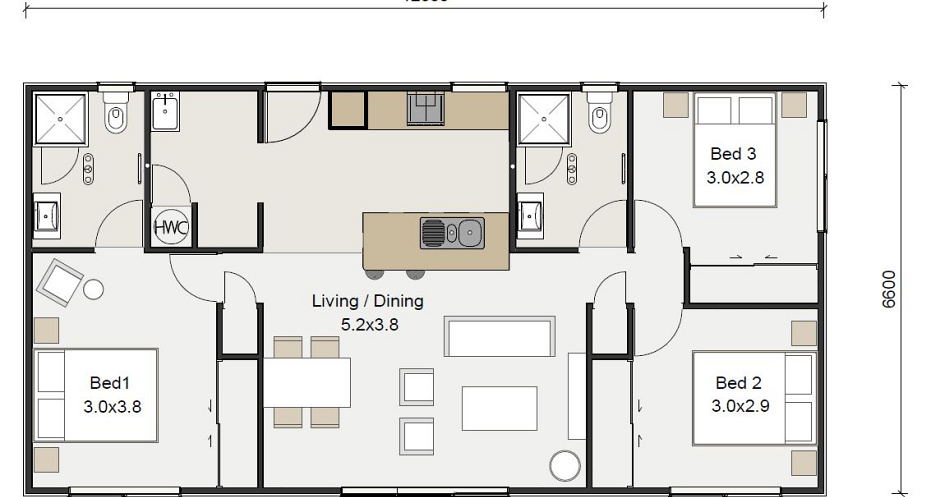 FIRST CHOICE 85 MONO BOXED END 3 BED, 2 BATH TRANSPORTABLE HOME, CONSENTED AND NOW FOR SALE.