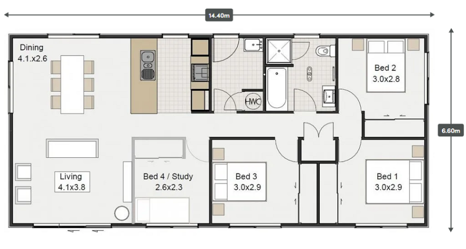 This 3 bedroom 95m2 transportable home is now completed and ready for your section.